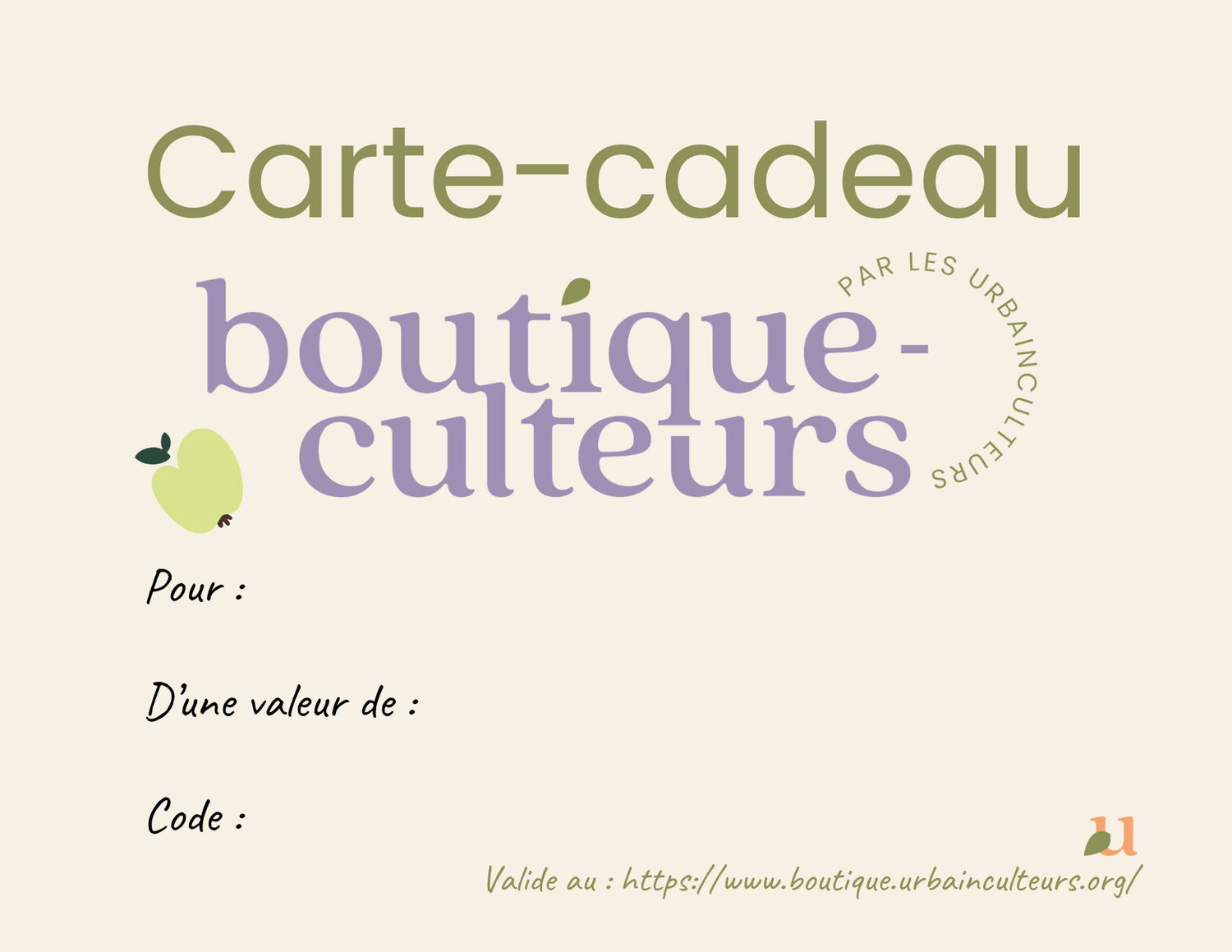 Certificat-cadeau Les Urbainculteurs de 25$ à 100$